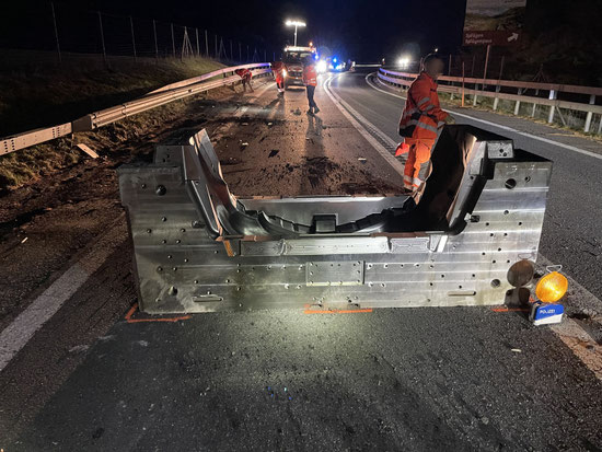 K. In der Nacht auf Donnerstag hat ein Sattelschlepper auf der A13 in Splügen eine tonnenschwere Ladung verloren. Es entstand grosser Sachschaden.